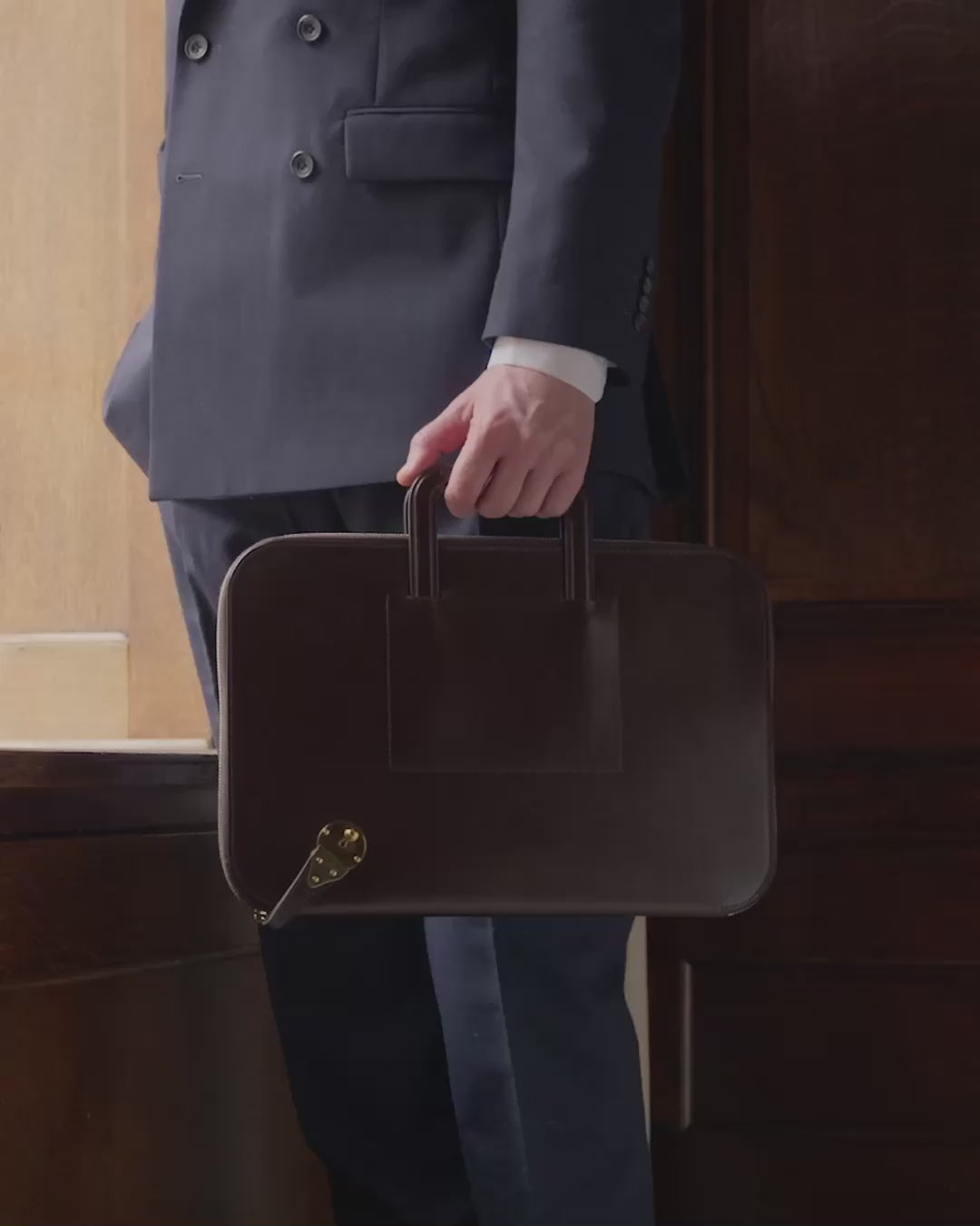 このフォリオは、広々とした内部空間を備えています。洗練されたフォリオとして手持ちで持ち運ぶことも、控えめなハンドルを使って洗練されたブリーフケーススタイルにすることもできます。